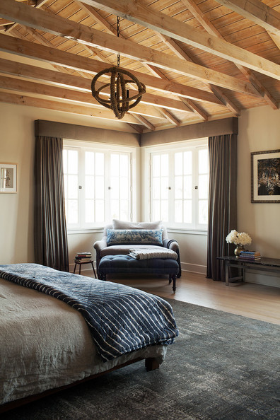 Interior designer Kishani Perera added wood beams to the master bedroom of Dexter star Michael C. Hall’s L.A. home, giving the space a warm, barn-like feeling.