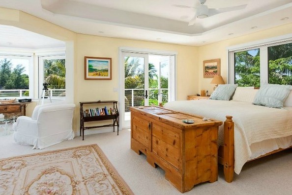 Tucked away on Florida’s Jupiter Island, Newton-John’s bedroom includes its own bar, sitting area, deck, and a built-in pop-up television.