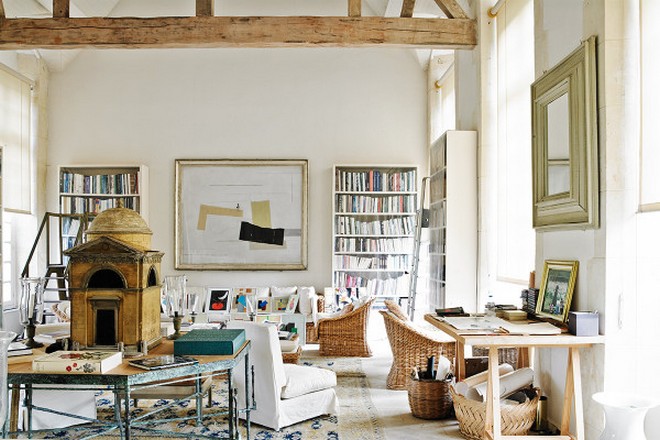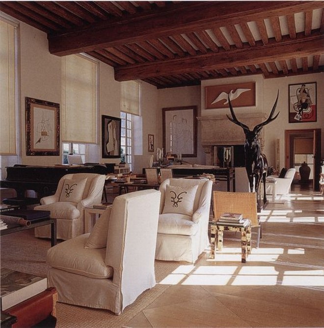 The light-filled study of Philippe Venet, Givenchy’s companion, at Château du Jonchet. The atelier at Château du Jonchet, from the French book “L’esprit des lieux” by Christiane de Nicolaÿ-Mazery; the bronze deer is by François Pompon. The main terrace, from the Spanish edition of Vanity Fair; photography by Pablo Zamora. A guest bedroom at Château du Jonchet, from the French book “L’esprit des lieux” by Christiane de Nicolaÿ-Mazery, among other incledible pictures!
