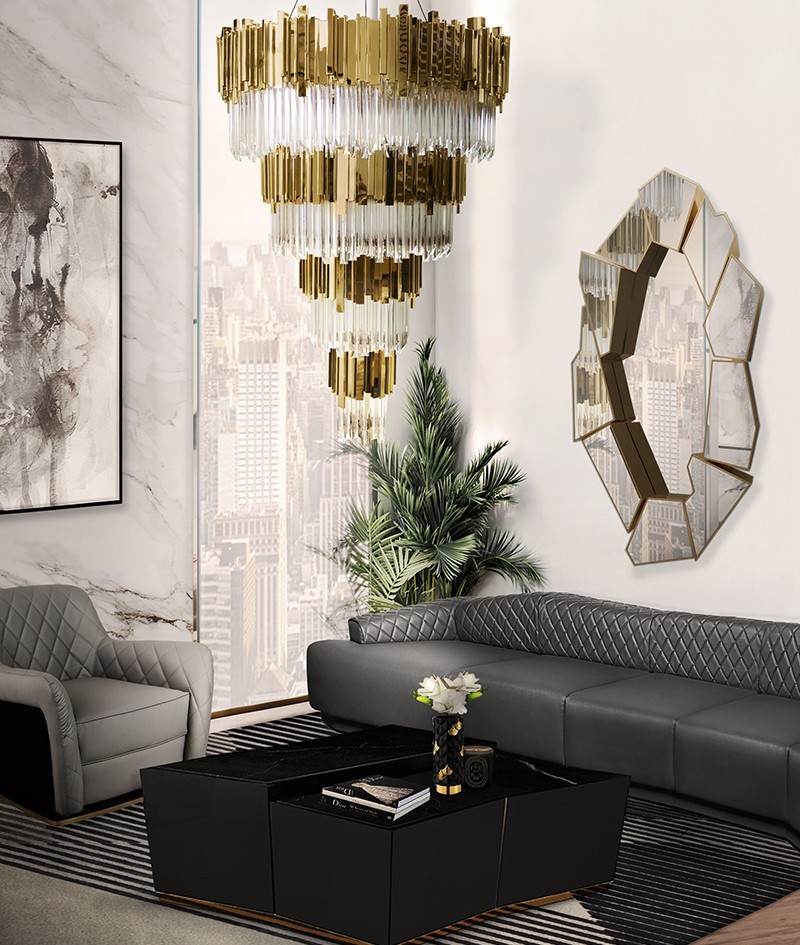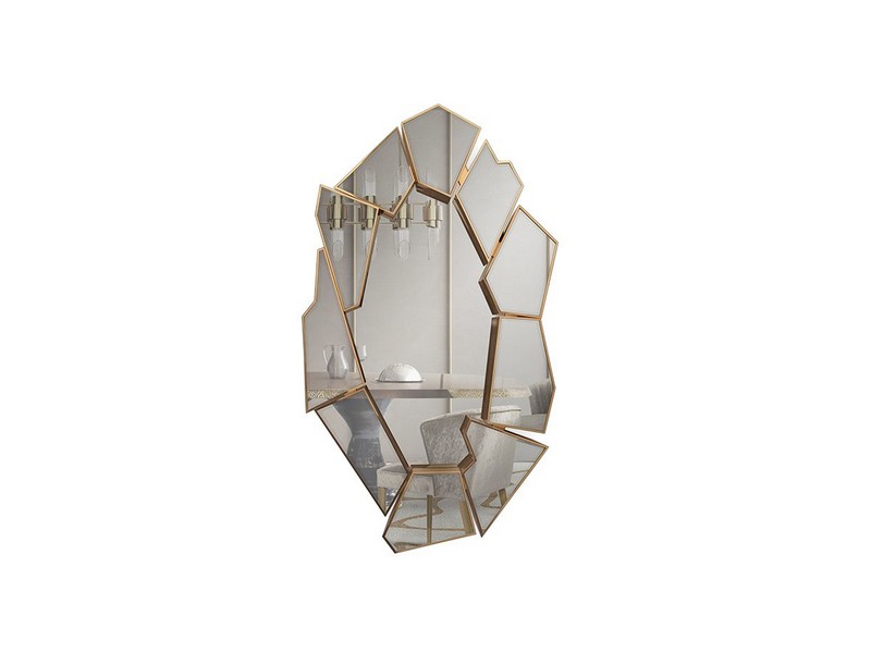 Crackle Mirror is made of the finest gold plated brass and smoked black mirror. Inspired by the opulence of golden nuggets it is graced with the ability to create exclusive and refined ambiances. This geometric design resembles a shattered mirror and promises to create the most glamorous interiors.