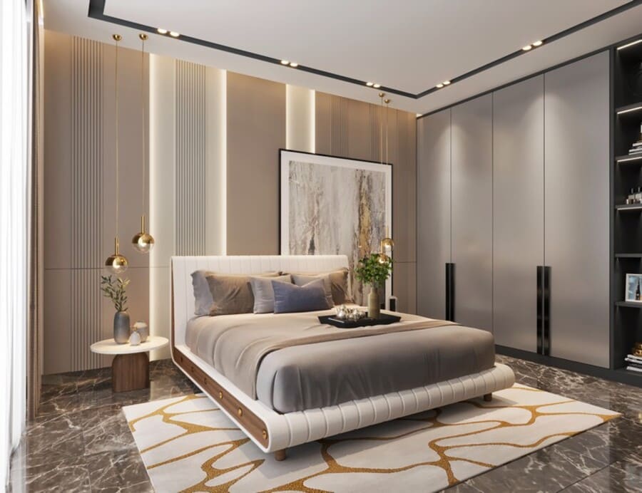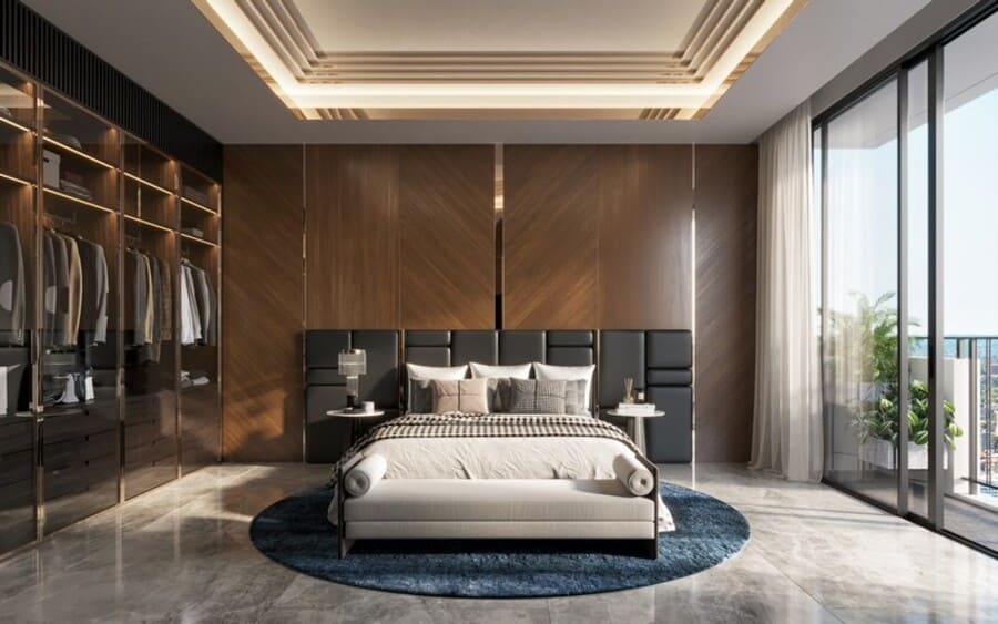 Taking much inspiration from the words “less is more”, this quiet and soothing master bedroom is the culmination of all the previous areas, but in a much cleaner and softer way. Wooden panels transform this otherwise ordinary and simple room into a masterful and glamourous division.