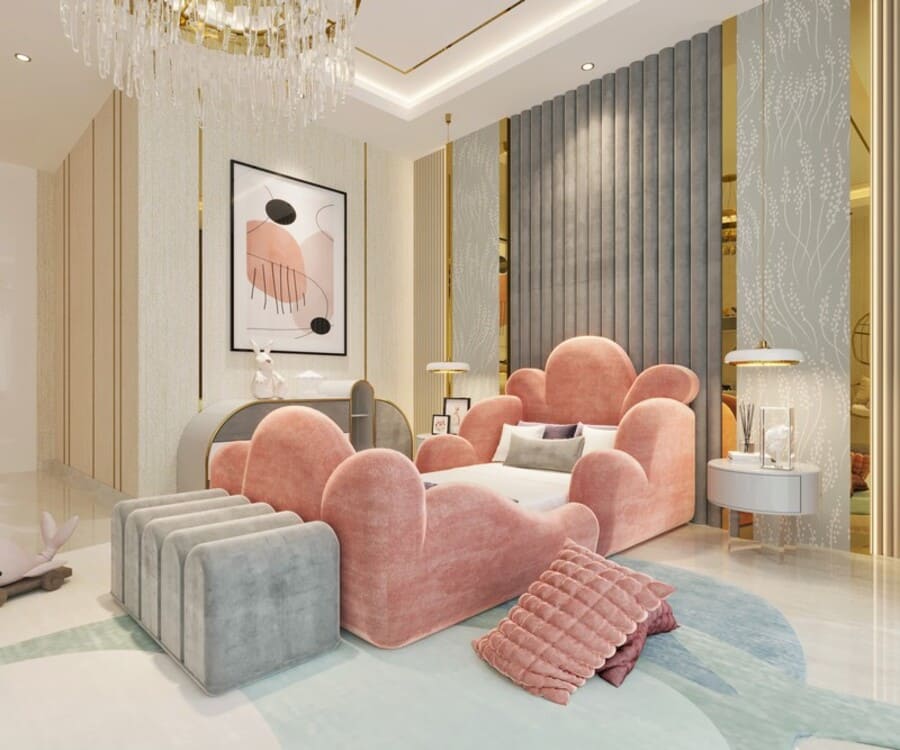 Tristen Bed was inspired by the movie Atlantics, it was made to shape comfort and to keep your little one’s dreams safe and sound while he/she travels through their imagination at night. Made with the finest materials such as wood and soft velvet, the Tristen Bed is a kingdom ready to take a place in your bedroom project and your kid’s life.